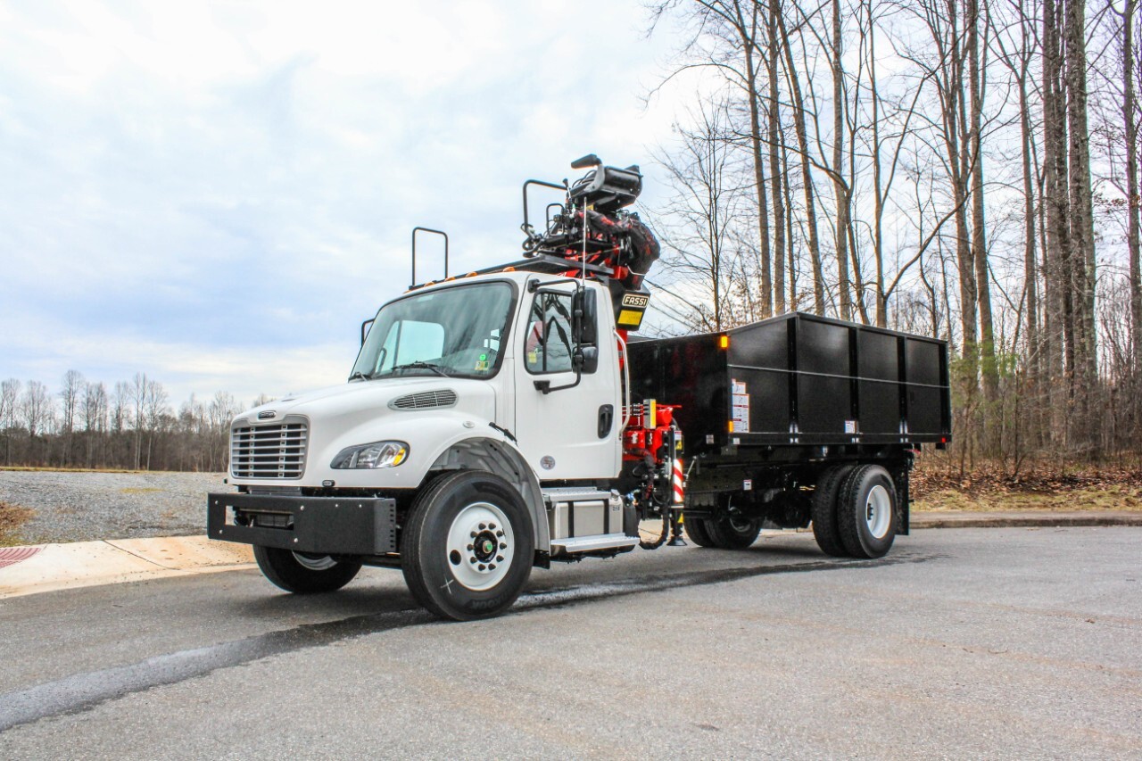The Altec Heartland consists of a 33000-gvwr Freightliner chassis with a log body an Effer knuckle boom boom crane a 360-degree continuous-rotation grapple saw 33-inch jaw opening 14-inch cutting depth 3300-pound maximum lift capacity and radio remote controls. The knuckle boom and the grapple saw. 2012 Freightliner M2-106 Grapple Truck Stock BX147.